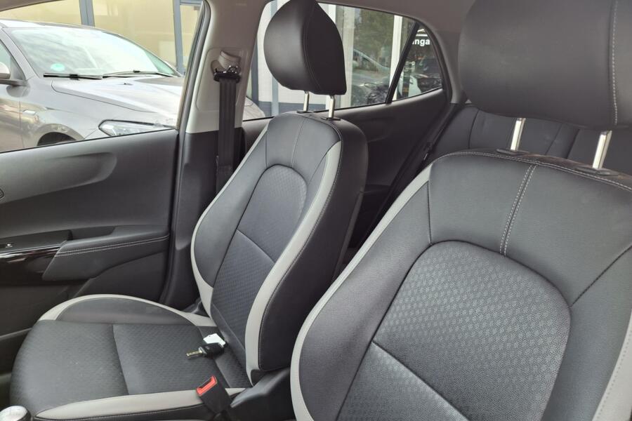 Alle technologie in de Kia Picanto is er op gericht om uw rit veilig en gemakkelijk te laten verlopen. Dit mooie exemplaar komt uit 2018. Hij rijdt lekker, deze Kia. Pittig ook. Het lederen interieur is een stijlvolle extra van deze Kia Picanto. Natuurlijk behoren 15 inch lichtmetalen velgen, LED-dagrijverlichting, in delen neerklapbare achterbank en LED-achterlichten ook tot de uitrusting van deze complete auto.
